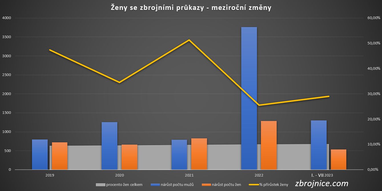 Zásadní část článku se nicméně věnuje nárůstu počtu držitelek zbrojních průkazů. Ta je pravdivá a stojí za to se na data podívat podrobně.