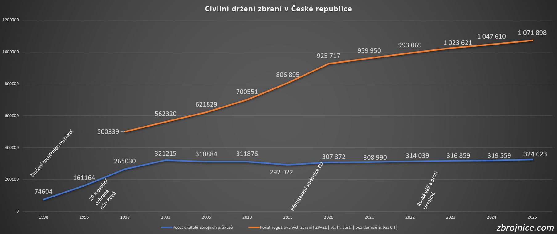 - Zbraňové statistiky 2024: Výrazné zpomalení nárůstu zbraní; počet držitelů směřuje k modernímu rekordu (starší: 2023, 2022, 2021, 2020, 2019)